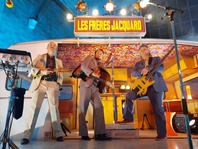 Les frères Jacquard, trio de musiciens – chanteurs, improbables, proposent un spectacle mêlant musique et humour, performances vocales et improvisations théâtrales, élégance vestimentaire et extravagance assumée. Un show burlesque à la croisée du concert et du spectacle.